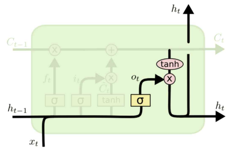 Cell state는 다음 상태로 넘어가는것과 동시에 현재 상태의 Output을 출력할때에도 역할을 하게 됩니다. 이를 output gate 라고 합니다.