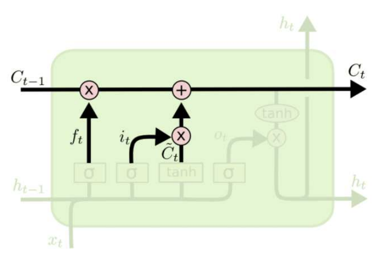 이렇게 업데이트가 끝난 Cell state는 데이터 끝단까지 이 과정을 거치면서 이어나가게 됩니다.